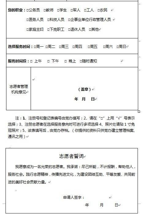 (六)审核合格后,在登记表上盖章认可。登记表一式两份,一份由各对口志愿者服务团队留存,另一份交由党办统一注册归档管理。