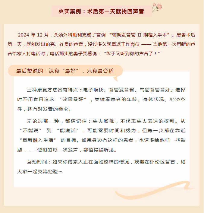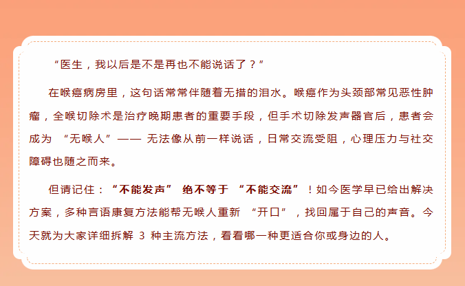 全喉切除后,这3种方法帮无喉人找回声音