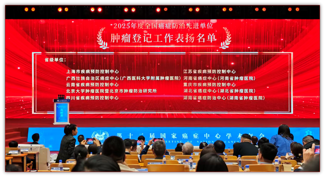 11月1日,第十二届国家癌症中心学术年会在北京召开。会上,国家癌症中心通报表扬了2025年度全国癌症防治先进单位。湖北省癌症中心(湖北省肿瘤医院)凭借扎实的工作成效,获评“先进省级肿瘤登记负责单位”;由其推荐的襄阳市肿瘤登记处(襄阳市疾病预防控制中心)同步斩获“先进基层肿瘤登记处”称号。