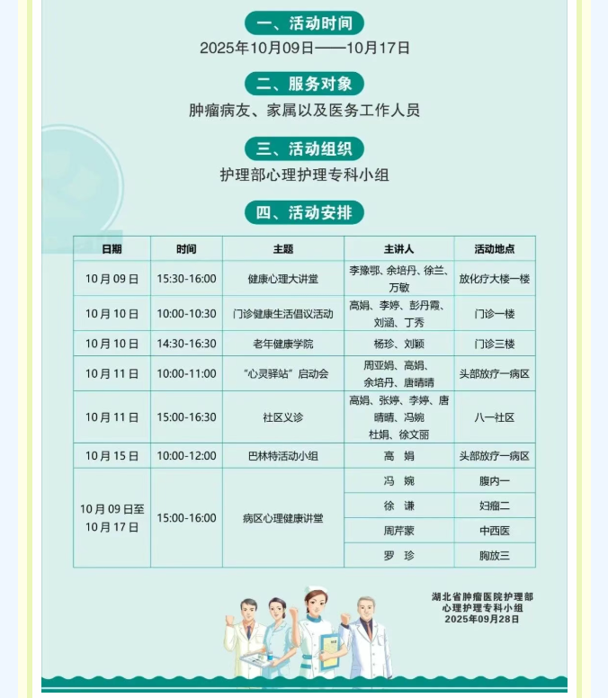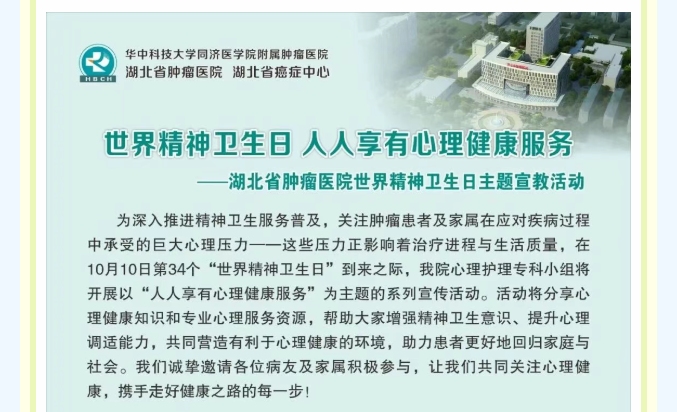 世界精神卫生日——湖北省肿瘤医院多措并举,共筑患者“心灵港湾”