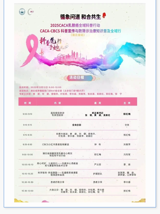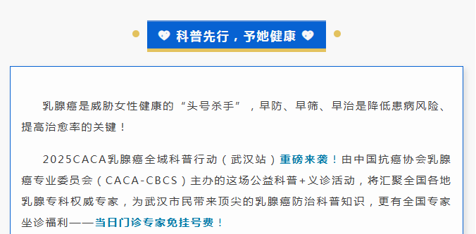12月12日!2025CACA乳腺癌全域科普行动来啦,专家义诊免挂号费!