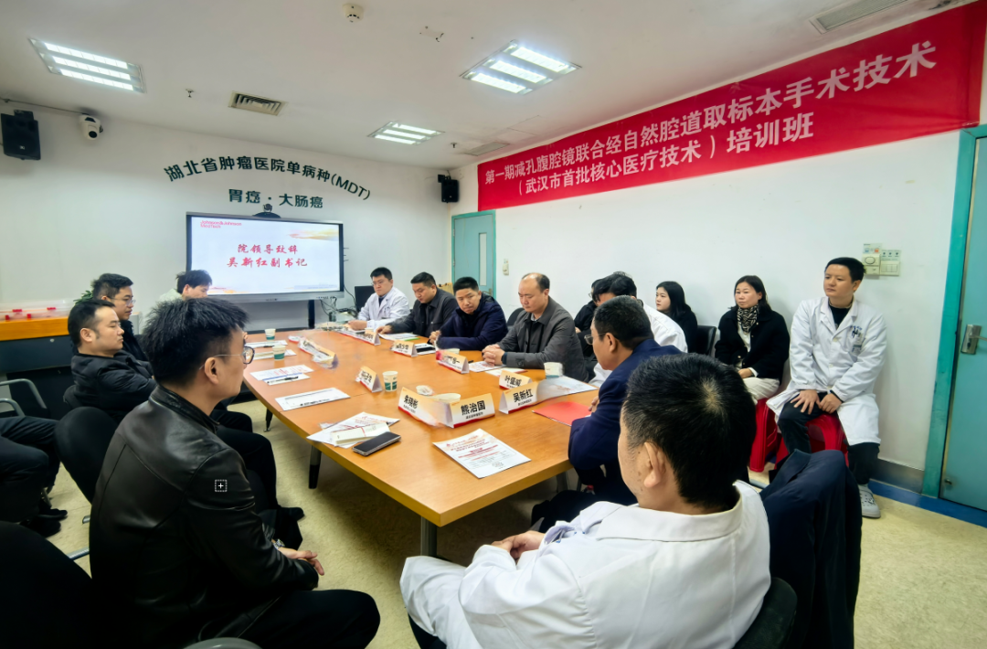 12月19日,湖北省肿瘤医院胃肠外科在院举办第一期“武汉市首批核心医疗技术——减孔腹腔镜联合经自然腔道取标本手术技术培训班”,吸引了省内外近10家医院的医生参加。本次培训聚焦结直肠微创外科的前沿术式技术经验分享,旨在加强交流与合作、推进技术规范与创新,提升区域肿瘤诊疗水平。