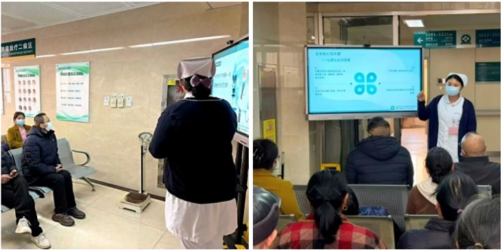 随后,护士刘诗宇围绕“秋冬安全防护小知识”展开分享。她结合科室实际案例,以通俗易懂的语言,重点讲解了跌倒和烫伤这两类常见风险的预防措施。在防跌倒方面,她从步态训练、防滑设施使用、选择合适的防滑鞋等方面提供了具体建议;在防烫伤方面,她细致讲解了热水袋使用规范、热食热饮注意事项以及取暖设备的正确操作方法,内容贴近实际,可操作性强。
