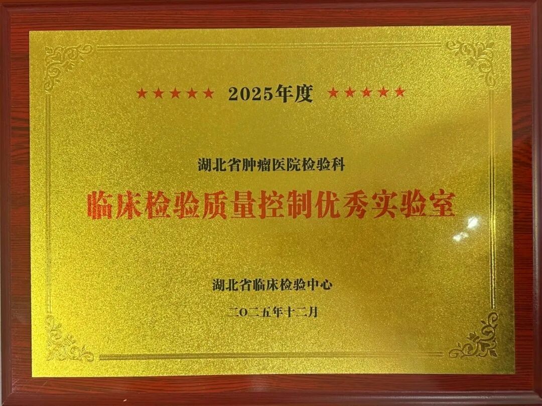 近日,湖北省肿瘤医院检验科被湖北省临床检验中心授予“2025年度湖北省临床检验质量优秀实验室”称号。