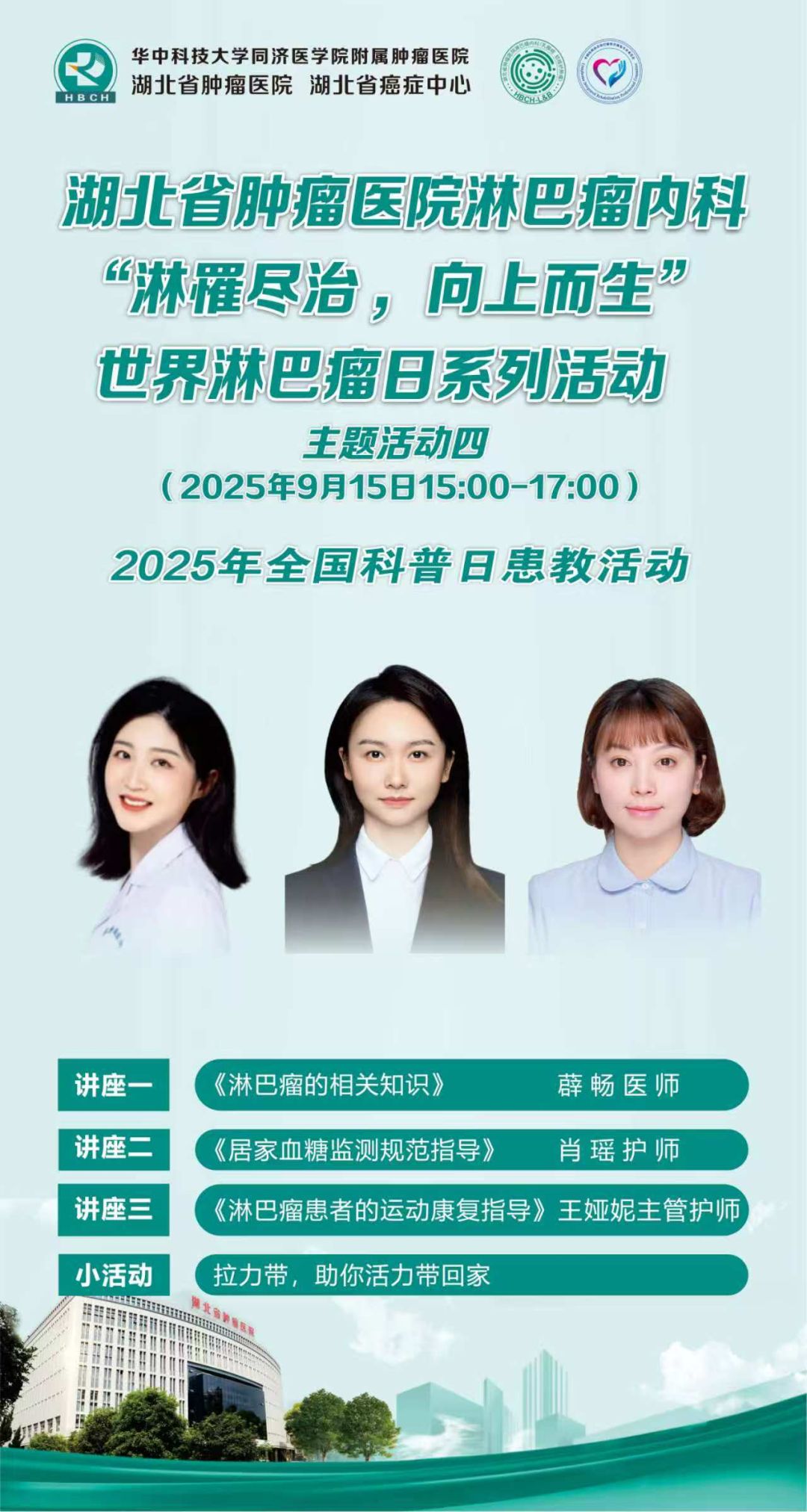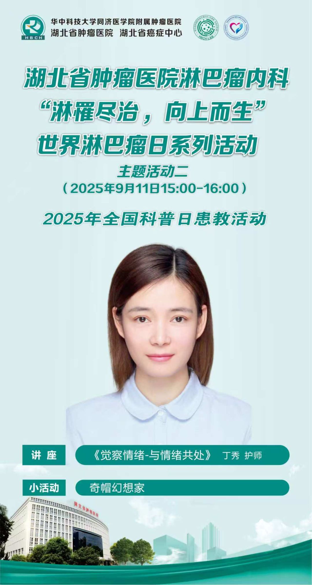 在国家政策层面,国务院2025年《政府工作报告》明确强调“加强重大慢性病防治,提升罕见病诊疗能力”,国家卫健委同步印发《淋巴瘤规范化诊疗提升计划(2025-2027)》,要求建立“防-筛-诊-治-康”全周期管理体系,提升淋巴瘤的规范化诊疗水平。我省积极响应“健康中国”战略,持续推进“323”攻坚癌症防治行动,将其作为打造健康中国战略湖北样板的重要举措。值此湖北省肿瘤医院淋巴瘤内科(血液肿瘤)举办“Honest talk·真诚对话”世界淋巴瘤日系列活动暨2025年全国科普日患教活动。